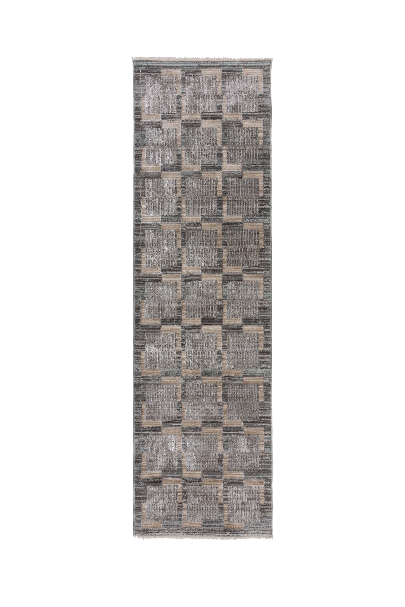 Voor een trendy vloerkleed boordevol details is het **Evelyn Blocks vloerkleed** de perfecte toevoeging aan je ruimte. Het ingewikkelde geometrische patroon is geweven van space-dyed garen, waardoor meerdere lagen diepte samenkomen en een glanseffect ontstaat dat het licht in je woonkamer of slaapkamer vangt. Afgewerkt met een subtiele bohemian franje. Ook verkrijgbaar in een loperformaat.